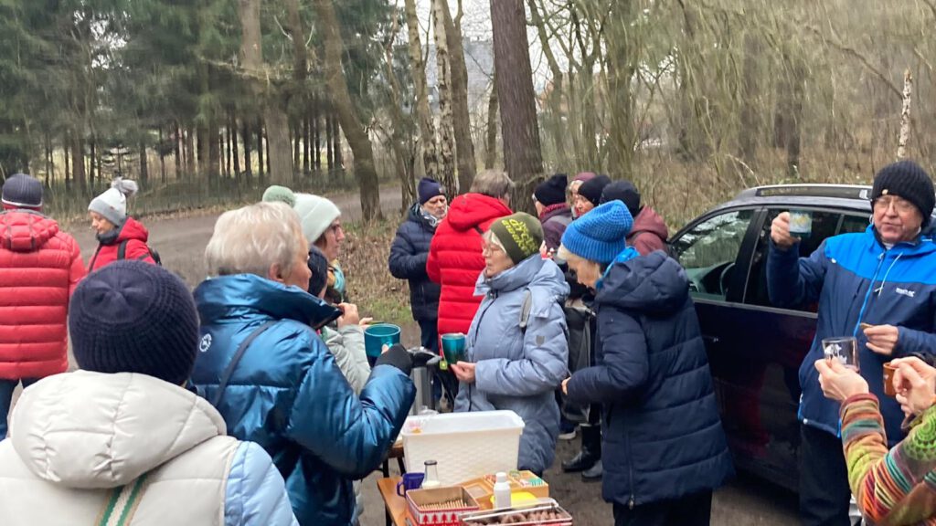 Über den Marschweg hin zum Twistringerweg geht die Gruppe auf den Katenbäkerberg wo es auf der Hälfte eine Verpflegungsstation gibt. Da wartet Klaus mit Heissgetränk und Keksen. Nach kurzer Pause geht es weiter zur Katenbäke, dem Wasserlauf folgend Richtung Hunte wieder über die Bäke zurück zur Burgwiese dort über die Hunte und zurück zur Gildestube. Nach einer guten Stärkung werden 4 Gutscheine verlost. Helga Maas, Rudolf Diegruber, Joachim Otto und Fredi Schlegel waren die Gewinner.